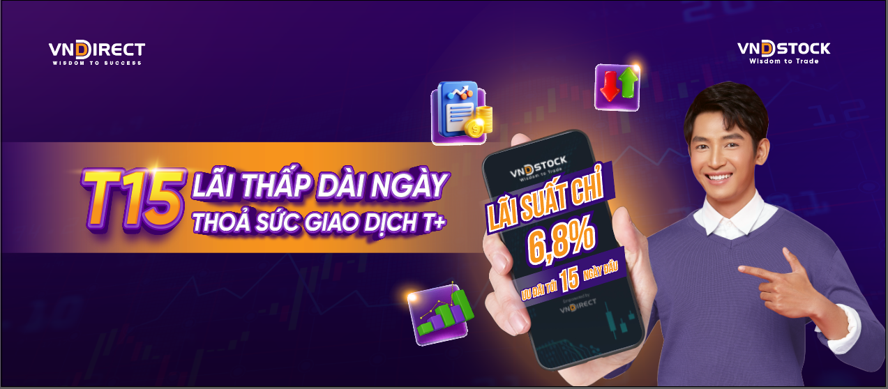 T15 là sản phẩm giao dịch ký quỹ ưu đãi lãi suất trong kỳ hạn lên tới 15 ngày, dành cho Nhà đầu tư ưa thích giao dịch và nắm giữ danh mục trong thời gian ngắn với mức lãi suất hấp dẫn chỉ từ 6,8%/năm.