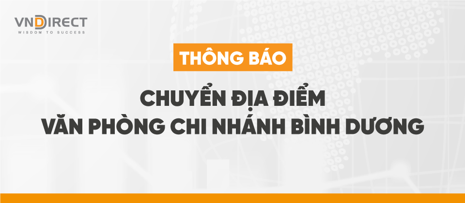 Công ty Cổ phần Chứng khoán VNDIRECT chân thành cảm ơn Quý khách đã tin tưởng và lựa chọn sử dụng dịch vụ của chúng tôi. Nhằm nâng cao chất lượng phục vụ và mang đến trải nghiệm tốt hơn cho khách hàng, Công ty Cổ phần Chứng khoán VNDIRECT xin trân trọng thông báo về việc thay đổi địa điểm văn phòng chi nhánh Bình Dương như sau :