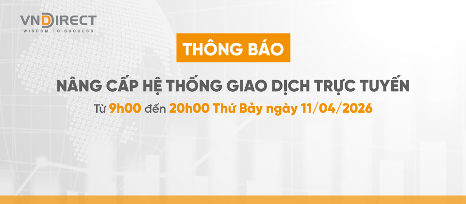 Nhằm nâng cao chất lượng dịch vụ và tối ưu trải nghiệm khách hàng, VNDIRECT xin thông báo kế hoạch nâng cấp hệ thống giao dịch trực tuyến như sau: