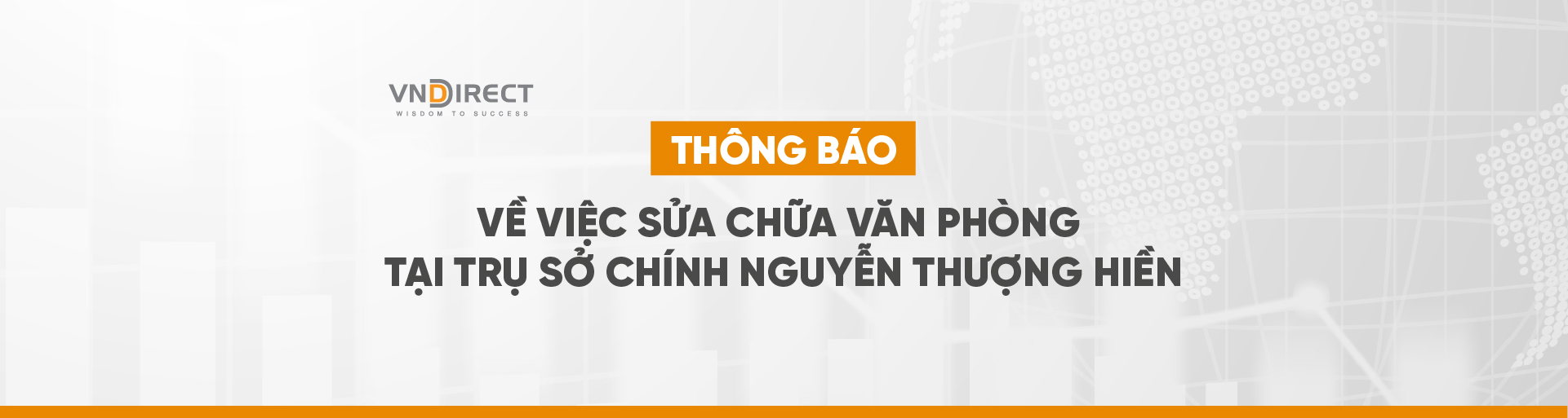 Nhằm mang đến không gian giao dịch, làm việc tiện nghi và trải nghiệm dịch vụ tốt hơn, Công ty Cổ phần Chứng khoán VNDIRECT sẽ tiến hành sửa chữa văn phòng tại Trụ sở chính số 1 Nguyễn Thượng Hiền, Quận Hai Bà Trưng, Hà Nội từ ngày 10/11/2024 đến ngày 11/12/2024.
